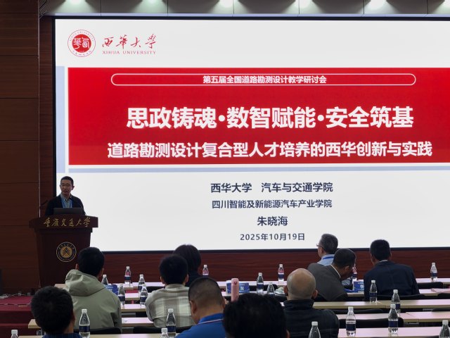 我院交通科学与工程系副主任朱晓海副教授和张诗波副教授应邀出席本次会议。研讨会期间,朱晓海副教授以“思政铸魂,数智赋能,安全筑基:道路勘测设计复合型人才培养的西华创新与实践”为题作大会交流报告,介绍了我院在课程建设中的经验和先进做法。