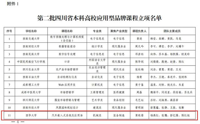 近日,四川省教育厅公布第二批四川省本科高校应用型品牌课程立项名单,我校汽车与交通学院申报的《汽车嵌入式系统及应用B》课程成功入选,成为本次立项中我校唯一获评的省级应用型品牌课程。