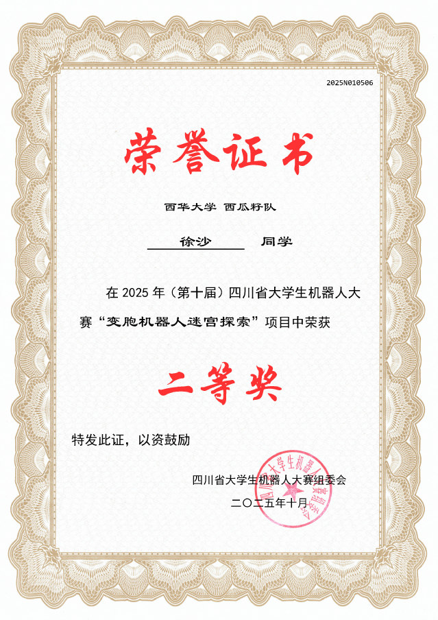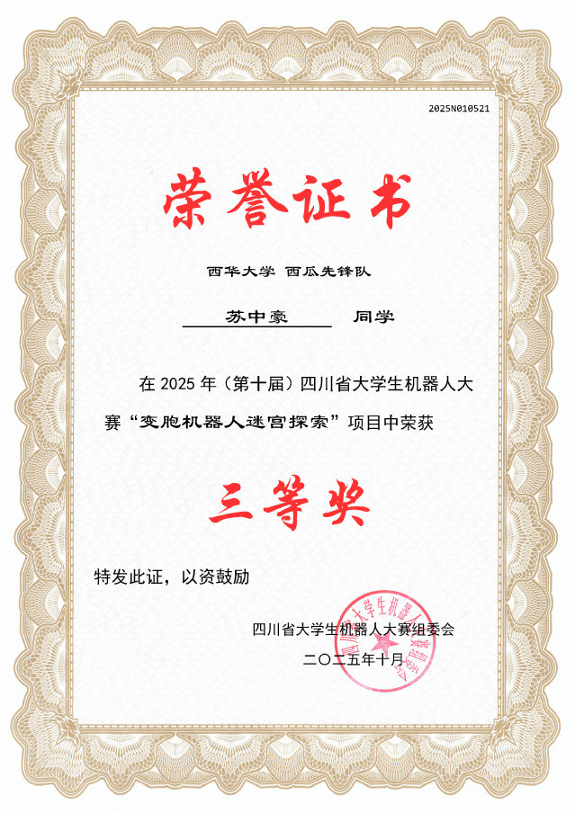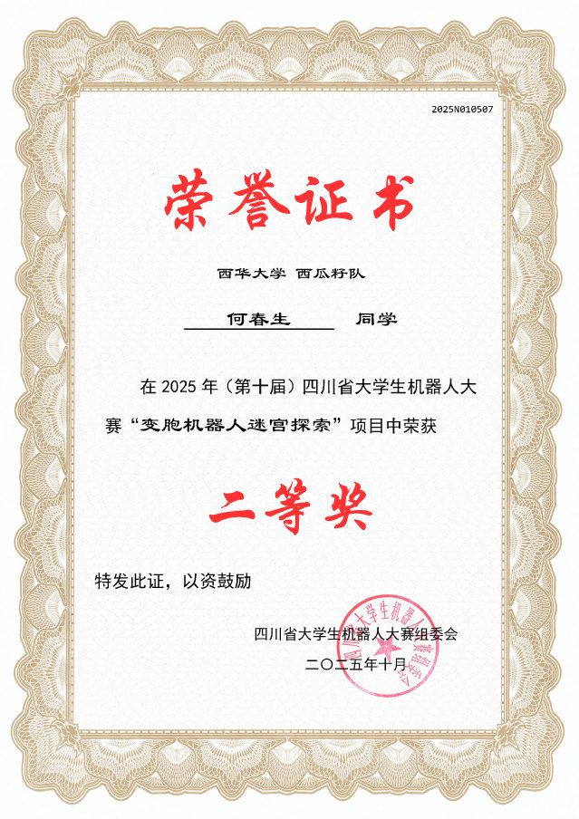 在变胞机器人迷宫探索项目,我院学子斩获两项奖项:由杨燕红老师指导的“西瓜籽” 队(队员:徐沙、何春生、翟金彬)获二等奖;同样在杨燕红老师指导下,“西瓜先锋” 队(队员:苏中豪、张宇天、王智心、李平飞)摘得该项目三等奖。两支战队的优异表现,不仅展现了我校在机器人技术相关专业教学与科创实践中的扎实成果,更为学校赢得了荣誉,彰显了我院学子勇于探索、敢于创新的青春风貌。