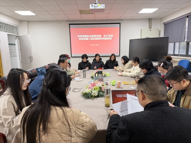 为深入学习贯彻党的二十届四中全会精神,搭建师生党支部交流桥梁,促进党建工作与人才培养深度融合,11月25日,我院交工专业本科生第二党支部与办公室党支部在5D214会议室开展联学共建活动。两个支部的全体党员齐聚一堂,以经验分享、理论领学、互动交流的形式,凝聚党建合力,共话成长发展。