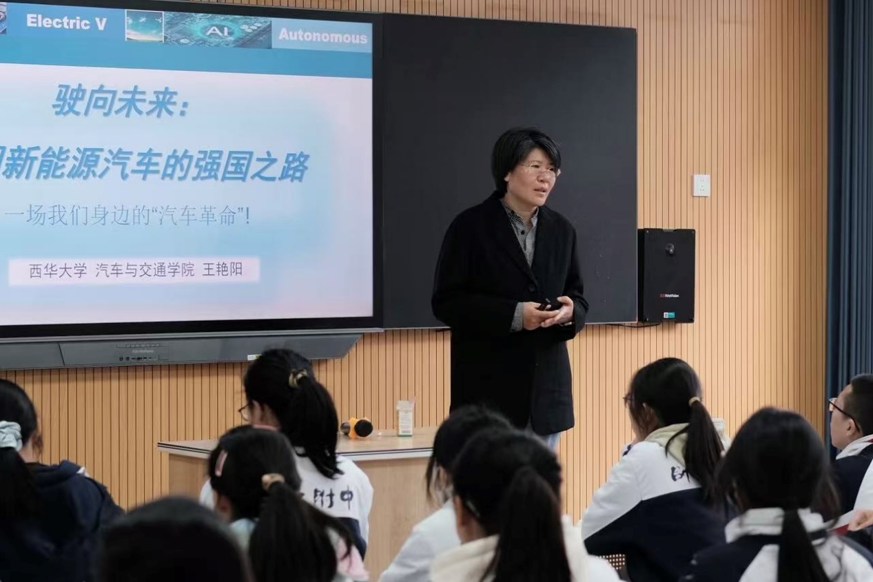 2025年11月28日,我院王艳阳教授走进四川师范大学附属中学,为该校入团积极分子带来了一场题为“驶向未来:中国新能源汽车的强国之路”的专题讲座。整场讲座立足国家战略、紧扣产业前沿,引领在场学子洞察行业变革、展望科技未来,现场反响热烈。