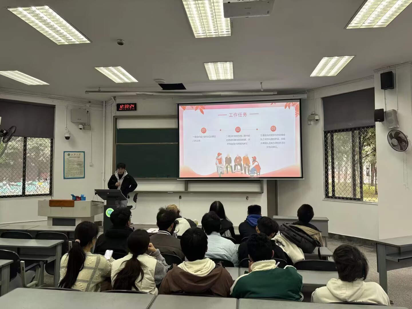 (学生通讯员:肖嘉豪)2025年11月13日,西华大学汽车与交通学院青年志愿服务队举办了一场意义特殊的志愿服务骨干培训会。本次培训的焦点在于“角色的传承”:站在台上为2025级新生班委授课的,正是去年此时作为学员的2024级青服队新任部长。他以“过来人”的身份,完成了从“受训者”到“培训者”的蜕变,生动诠释了志愿精神薪火相传的深刻内涵。
