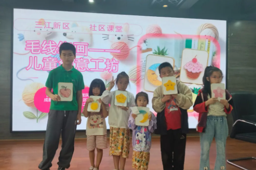 在"毛线绕画—DIY你的心动卡通人物"课堂上,团员志愿者们提前准备了彩色毛线、硬纸板和安全剪刀等材料,通过分步演示和一对一指导,带领孩子们将扁平的卡通图案转化为立体毛线作品。活动中,孩子们用稚嫩的小手缠绕出皮卡丘的闪电尾巴、Hello Kitty的蝴蝶结,甚至尝试创作原创角色。看到孩子们把杂乱的毛线变成生动的艺术品,团员志愿者们深刻感受到美育对创造力培养的重要性。