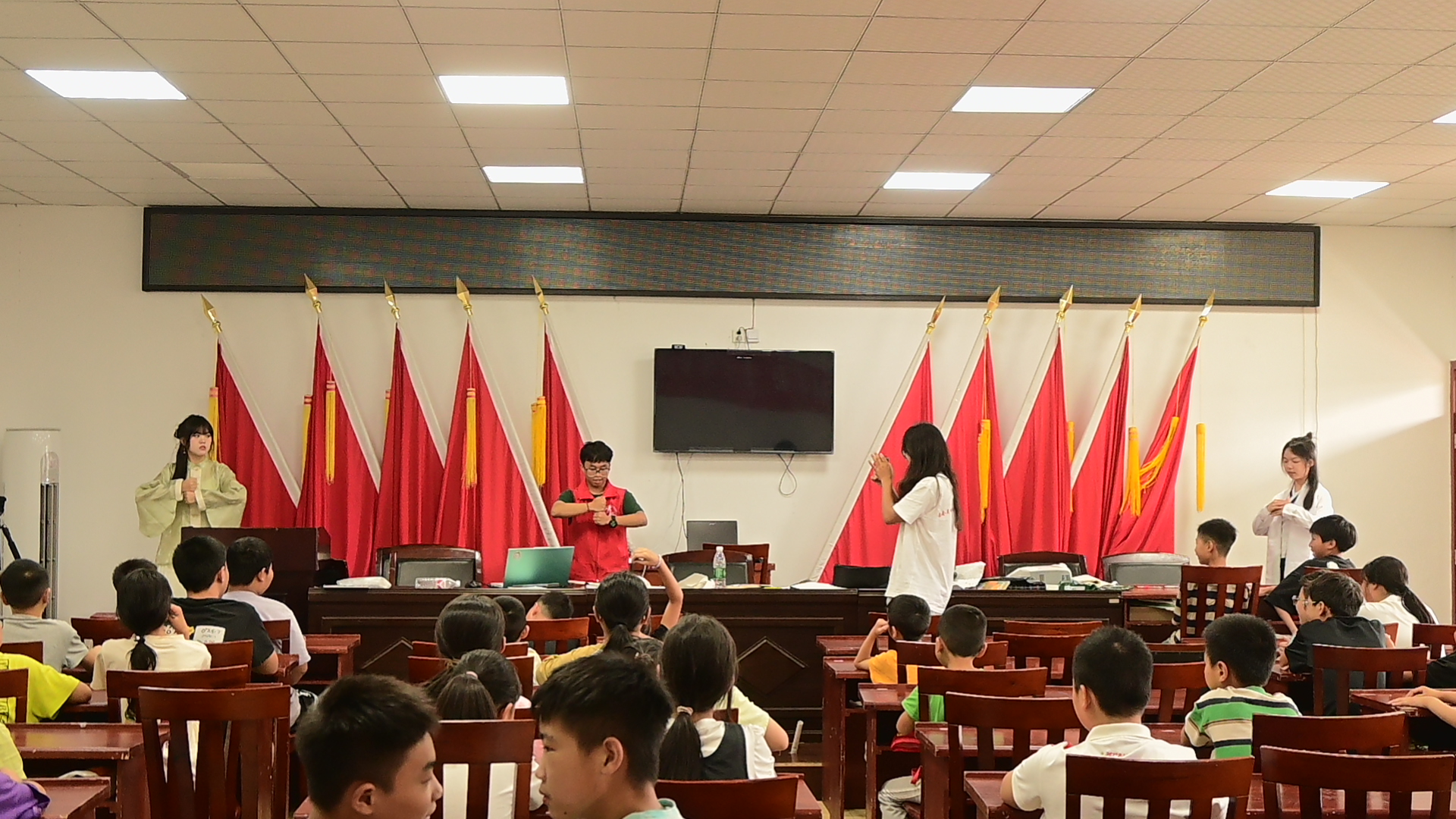 2025年6月7日,汽车学院宜宾校区团委组织青年实践团走进宜宾市志城社区,开展"衣冠上国·礼传童心"主题汉服文化体验活动,通过服饰演变讲解、传统礼仪教学与沉浸式展演,为社区小学生开启一场穿越千年的文化之旅。